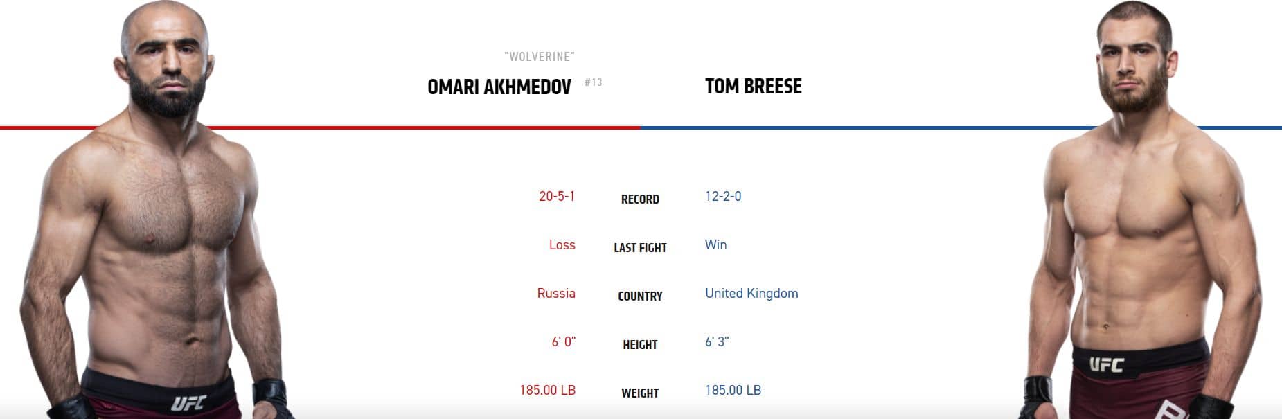 Tohle bude velmi vyrovnaný zápas, i když Breese je celkem jasný favorit. Angličan bude mít masivní výhodu v postoji a v kardiu. Rus Akhmedov na druhé straně ovšem nabídne velmi kvalitní wrestling, se kterým potrápil i bývalého šampiona Weidmana. Breese ovšem ani na zádech není vůbec špatný, ba naopak. Jako pravý černý pás v BJJ už několikrát ukončil soupeře právě ze zad. Rus se ovšem ukončuje těžko a dokud’ má z čeho brát, tak se proti němu bojuje dost obtížně. Akhmedov navíc podává velmi konzistentní výkony, což se o Breesovi rozhodně říci nedá. Přesto musím dát lehkou výhodu Angličanovi, ale sázet rozhodně nedoporučuji. Jediná příležitost bude LIVE, když by Rus vyhrál první kolo a na Angličana by se výrazně zvedl kurz. Rus je po prvním kole poloviční a Angličan by měl od druhého kola převzít otěže zápasu do svých rukou.