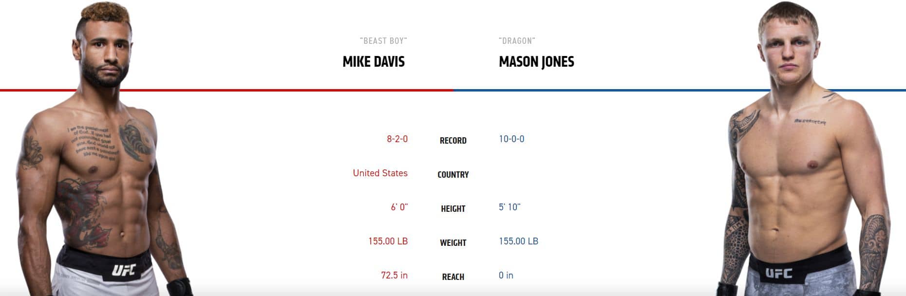 Potenciální zápas večera je už na prelims! Američan Davis má větší zkušenosti s kvalitnějšími bojovníky, ale neporaženého Velšana Jonese je neradno podceňovat. Američan má všechny výhry před limitem, ale Jones je velmi odolný borec. Očekávám tady krásný souboj, ve kterém ovšem jen těžko hledat favorita. Já si tady vsadit netroufnu, ale nejlepší kurz vidím na výhru Jonese 2,32.