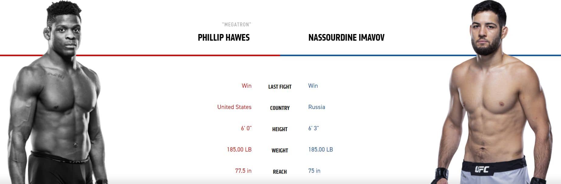 Phil Hawes vs Nassourdine Imavov bude jeden z nejlepších zápasů na kartě a jeden z borců se zřejmě prospí. Američan Hawes má až brutální sílu v úderech. Rovněž má velmi solidní wrestling, ale jeho velkou slabinou je chabé kardio. Když nevyhraje v prvním kole na KO, tak se utaví a nedokáže se soupeřem držet krok. Francouz Imavov sice není tolik nebezpečný v úvodech, ale pořád to je tvrdý postojář, který na rozdíl od Američana nebyl nikdy knockoutován. Francouz má vyhlášenou bradu, ale s Američanem si nemůže zahrávat nikdo… Imavov si v prvním kole bude muset projít peklem, ale díky svému skvělému pohybu, odolnosti a tvrdým protiúderům by to měl zvládnout. Američan se prakticky porazí sám, protože do všech úderů dá maximální razanci a ve druhém kole mu rychle dojde fýza. Imavov bude od druhého kola silnějším bojovníkem a docela věřím, že Američana ve druhém nebo třetím kole ukončí. Vidím tu více zajímavých kurzů: Imavov – výhra 2,03; Imavov ve 2. kole za 9,00 nebo ve 3. kole za 12,00.