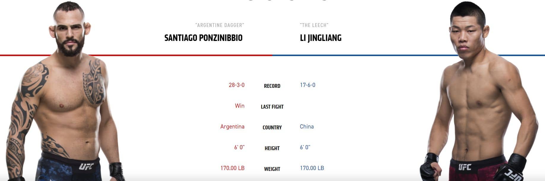 Uvidíme velký návrat skvělého Argentince nebo životní výhru zkušeného Číňana? Santiago Ponzinibbio vs. Jingliang Li je jedním z nejlepších zápasů na kartě, ale ze sázkařského hlediska bych nic nedával. Argentinec je výborný postojář, ale přes dva roky trvající pauza z důvodu zranění je alarmující. Ponzinibbio už taky není nejmladší a jednou z jeho hlavních zbraní byla vždy rychlost která se s věkem začne vytrácet jako první. Číňan je velmi odolný borec a i když čas od času prohraje na body, tak dokáže rozhodnout jediným úderem. Na KO Číňan nebyl ukončen nikdy! Za mě je Argentinec určitě oprávněný favorit, ale je tu dost neznámých a byt’ kurz 3,25 na Argentince na body vypadá slibně, tak se budu držet stranou.