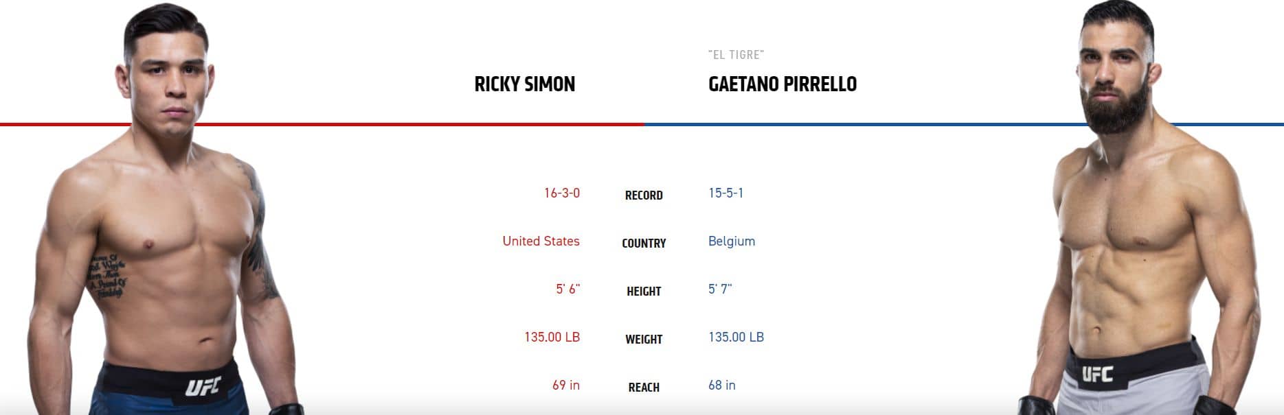 Američan Simón je velmi nekompromisní borec. Jeho wrestling je opravdu výborný a doručí v průměru skoro 7 takedownů za 15 minut, což patří mezi absolutní TOP v UFC. Moc si nedokážu představit, že by mu mohl Belgičan vzdorovat, když právě jeho obrana proti takedownům je řekněme diskutabilní. Belgičan má celkem nebezpečný postoj, ale Ricky na mě i v postoji působí lépe. Američan vyhraje minimálně na body, ale takovou submisi by taky mohl dotáhnout. Raději vsadím pouze na to, že vyhraje v kurzu 1,24 a k něčemu to přihodím.