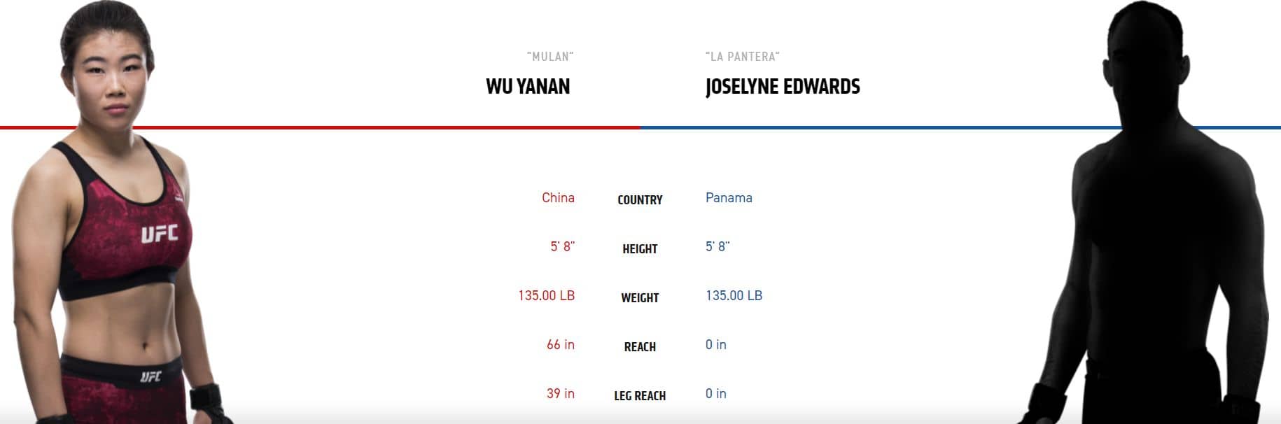 Druhý a poslední zápas žen: Yanan Wu vs. Joselyne Edwards. V kurzově vyrovnaném zápase bude Číňanka Wu muset chodit pro takedowny, protože Panamanka Edwards je lepší postojářka. Schopnost Panamanky odmítat takedowny bude rozhodující a určí výsledek zápasu. Já se musím lehce přiklonit na stranu Edwards, protože silově je na tom skvěle a málokterá bojovnice rozdává tak tvrdé rány jako právě ona. Přesto to nemůžu doporučit k vsazení, protože je tu hodně neznámých.