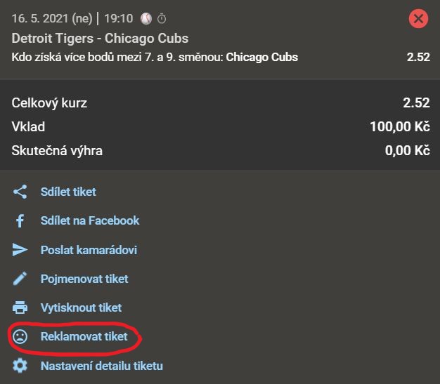 Uzavření sázkové příležitosti je neměnné, nelze ho vzít zpět, proto vždy přemýšlejte nad tím, zdali příležitost chcete uzavřít, nebo zdali se tiket vyplatí risknout.