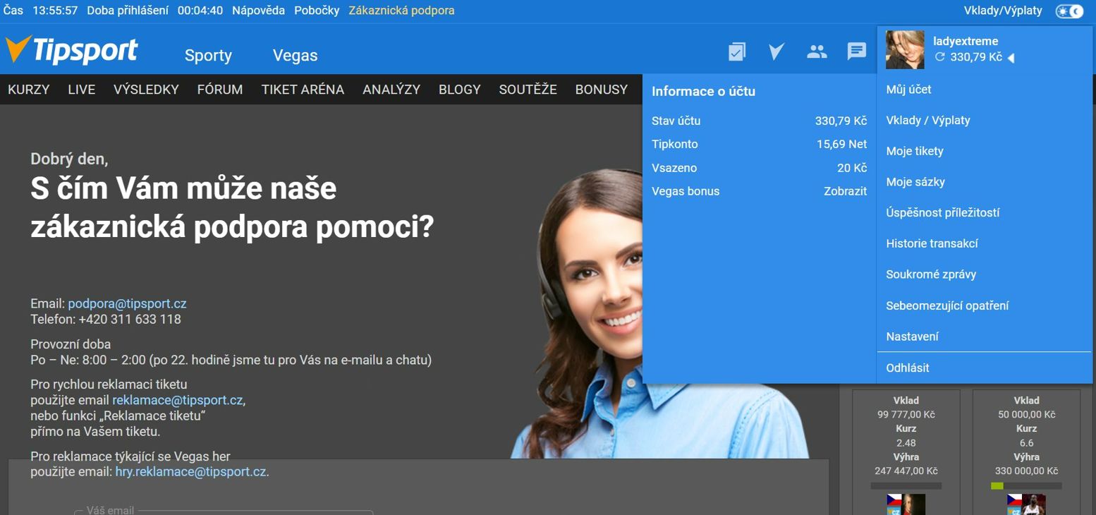 Sázková kancelář Tipsport stejně jako sázková kancelář Chance mají velmi přívětivou technickou podporu. V případě jakýchkoliv problémů se proto nemusíte být kontaktovat pověřené pracovníky buď skrze chat, email nebo telefon.