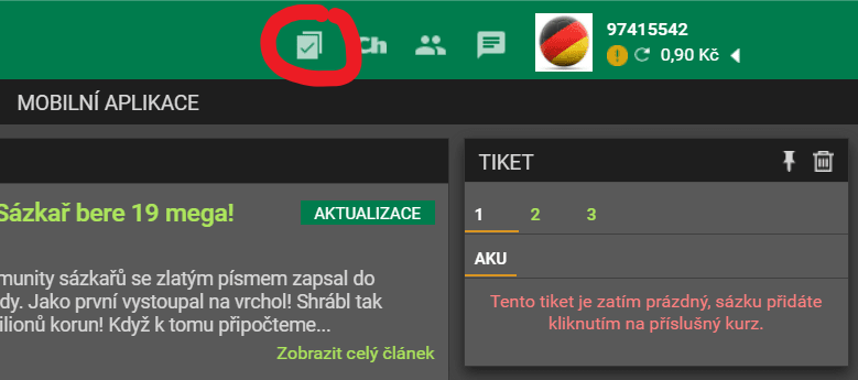 Pro storno tiketu se tedy přihlásíte na svůj účet u online sázkové kanceláře Tipsport či Chance, otevřete si menu a kliknete na záložku „Moje tikety“. Následně se vám ukáže výpis podaných tiketů. Poté si vyberete tiket, který chcete stornovat a kliknete na něj.