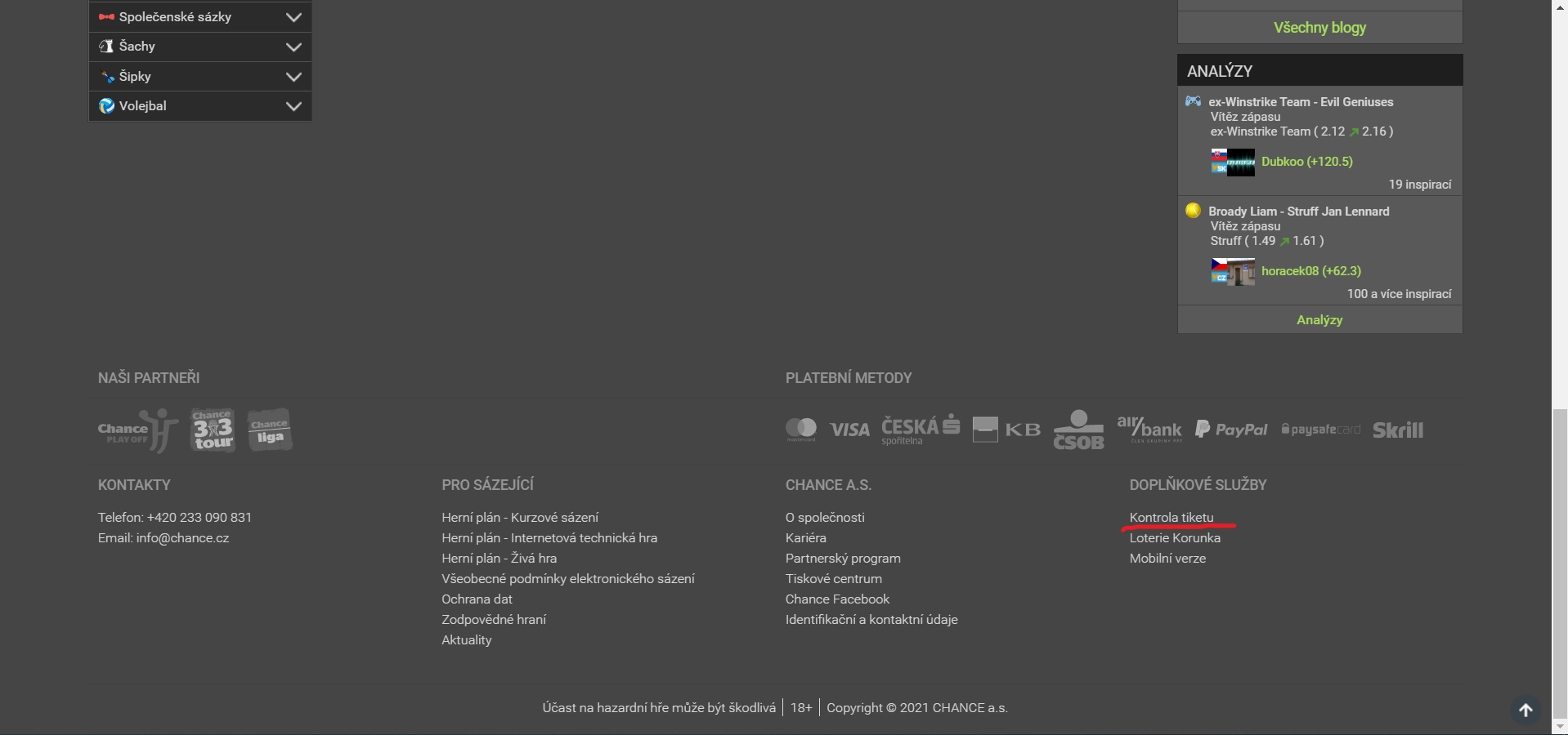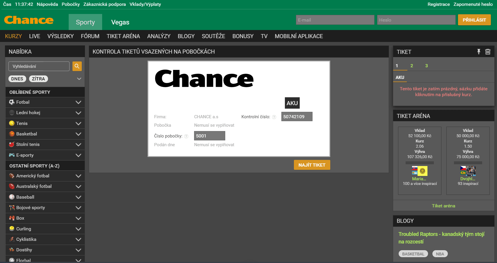 Stejně jako v případě kontroly tiketu u Tipsportu byste si měli dát pozor na to, abyste číslo svého tiketu vkládali vždy pouze do aplikace na stránkách Chance. Na internetu přibývá stále větší množství externích stránek, které kontrolu tiketu nabízejí. Netřeba zdůrazňovat, že při vkládání čísel tiketů na těchto stránkách hrozí, že o svou výhru přijdete. Vyvarujte se proto všech externích stránek a tiket si kontrolujte vždy pouze u sázkovky, u níž jste si vsadili!
