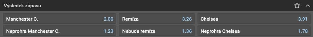 Vzhledem k tomu mezi těmito sázkami bývá také rozdíl v kurzech. Zpět k modelovému příklad mezi Manchesterem City a Chelsea.