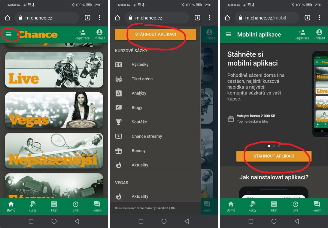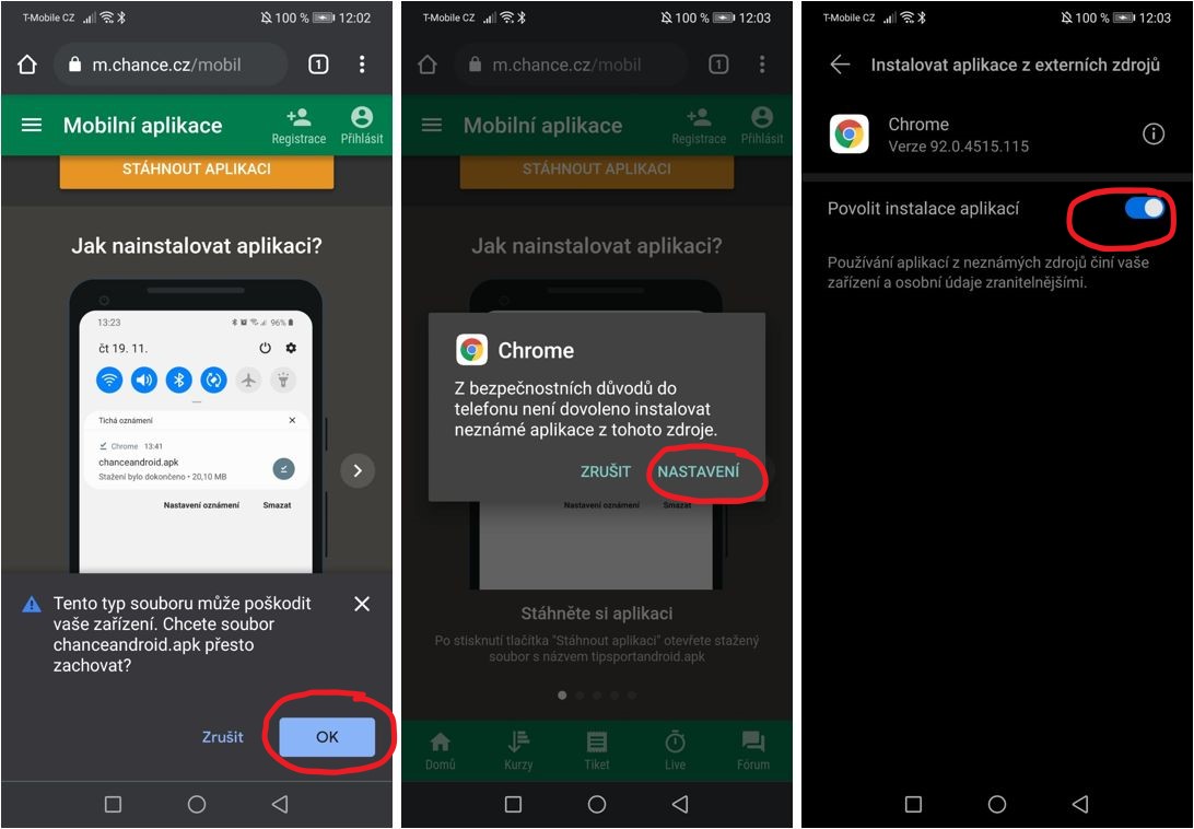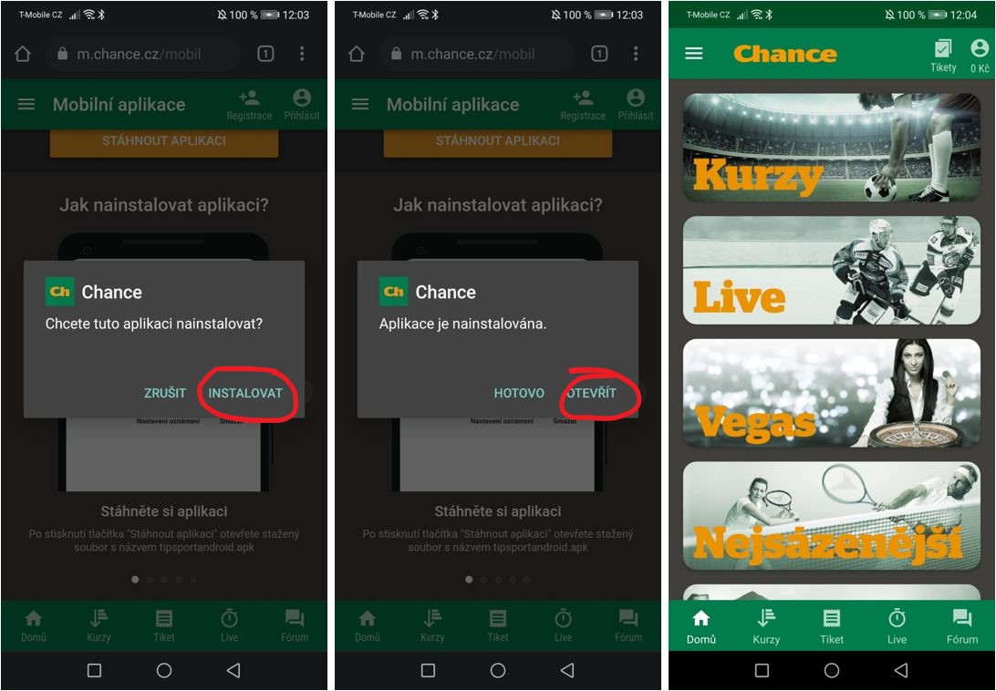Pokud máte zařízení s Androidem, čeká vás trošku delší instalační proces, protože v Google Play se kvůli podmínkám užívání tato aplikace nenachází. Nemusíte se však bát. Tento instalační proces je stále velmi snadný a nezabere vám déle než několik sekund. Procesem instalace Chance aplikace na zařízení s Androidem vás provedeme krok po kroku v následujícím bodu.