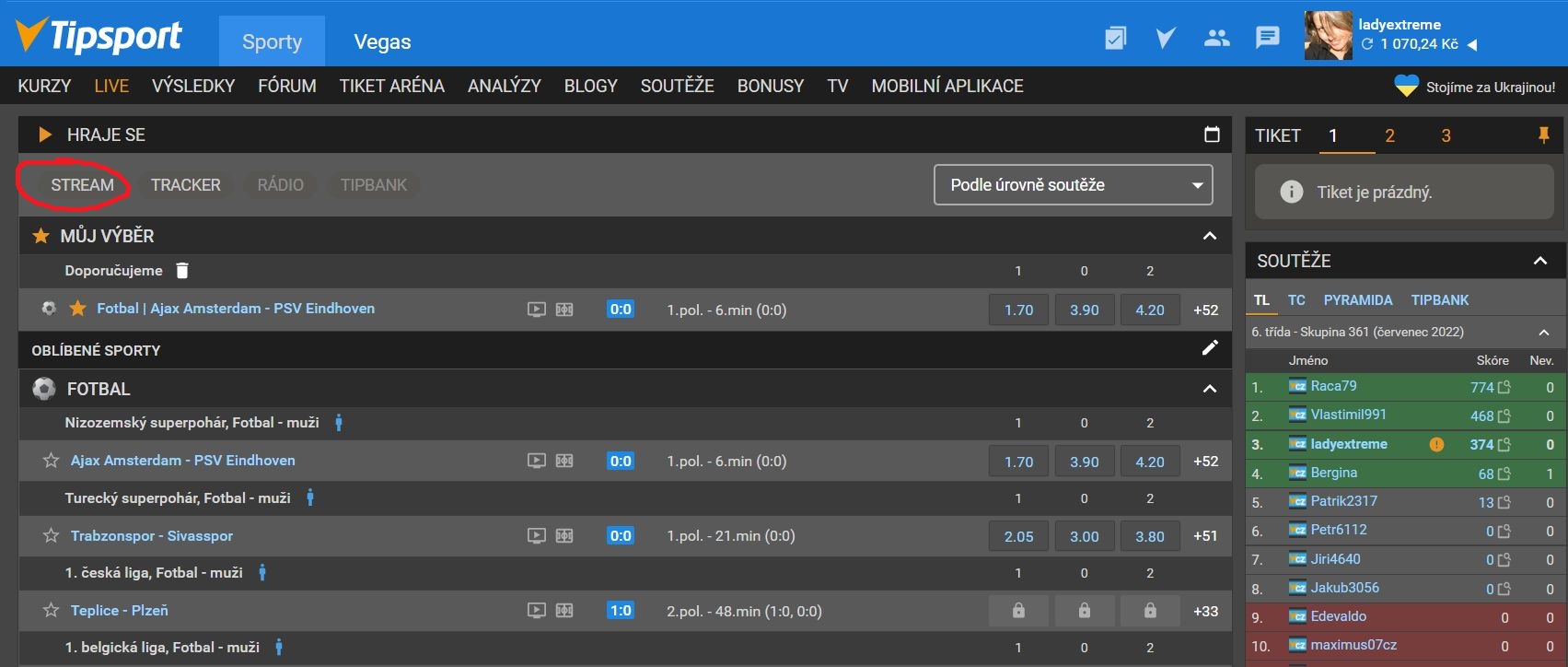 Fotbalové, či jakékoliv jiné streamy v Tipsportu lze spustit pouze řádně registrovaným uživatelům, kteří si v uplynulých 30 dnech vsadili za alespoň 30 Kč (v součtu všech sázek). Pakliže mezi takové sázkaře patříš, pokračuj podle následujícího návodu: