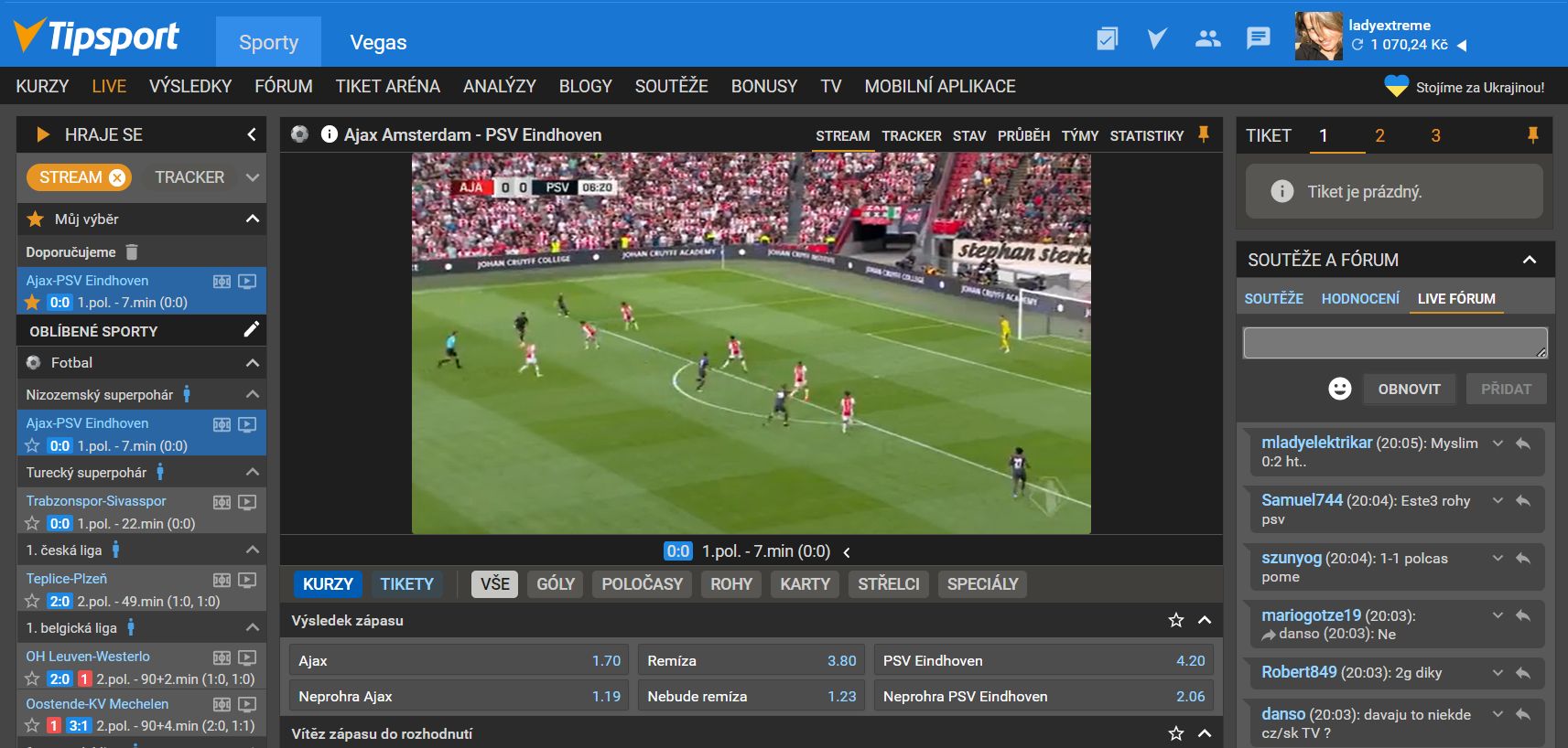 Abychom to odbyli z jedné vody na čisto, začneme živými přenosy v českých sázkových kancelářích. V současné chvíli fotbal živě nabízejí sázkové kanceláře Tipsport, Chance, Fortuna, Sazkabet, Betano a Synot Tip. Jedinými dvěma sázkovkami, v nichž nelze sledovat sportovní streamy, jsou v současné iForBet a MerkurXtip.