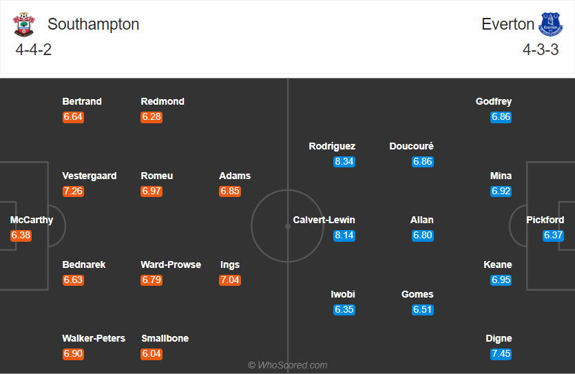 Theo Walcott nemůže proti svému mateřskému klubu nastoupit, a protože Moussa Djenepo a Stuart Armstron jsou zranění, respektive snaží se dostat do zápasového tempa po zranění, jediný, kdo by na pravém křídle mohl nastoupit, je William Smallbone.