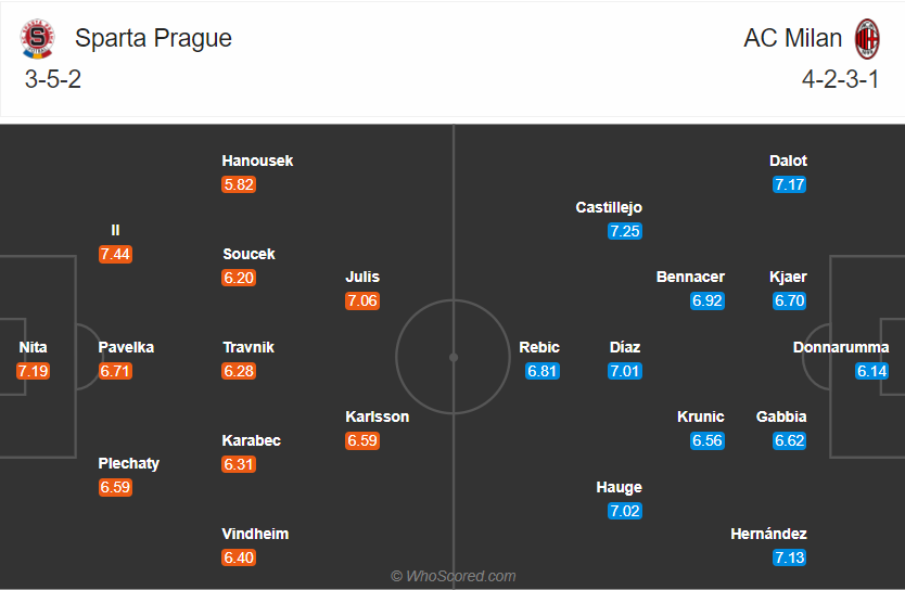 Tento zápas pro Spartu není životně důležitý, do vyřazovací fáze se strahovský tým již nedostane. AC Milán stále bojuje o první místo ve skupině. Aby zakončil na prvním místě, potřebuje vyhrát a zároveň doufat, že Celtic porazí Lille.