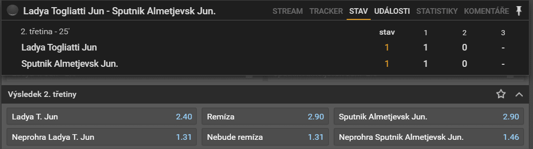 Ještě doplníme, že tato strategie se hraje především live, tedy až na sázku na remízu v první třetině, která se dá vsadit i před zápasem.