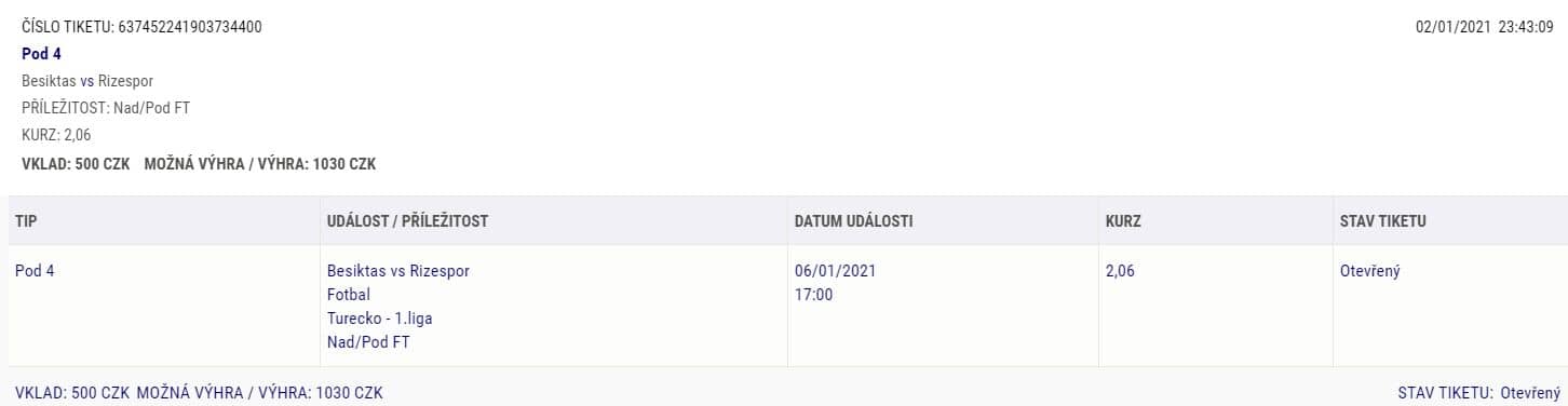 I přestože turecká liga má lehce nadstandardní průměrný počet gólů, v zápase Besiktas vs Rizespor doporučuji vsadit under 4,0 gólu. Tato hranice je poměrně bezpečná i pro tuto ligu.
