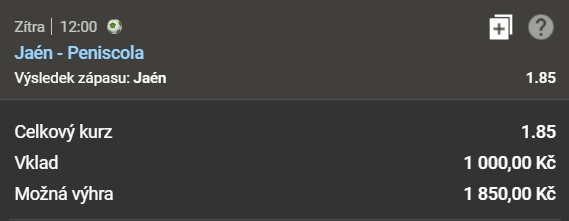 Samozřejmě na výhru domácích. Domácí se po peripetiích způsobených koronavirem vracejí zpět na scénu a měli by svého soupeře v pohodě dotáhnout. Jaen má nad svým soupeřem jasně navrch a mělo by to potvrdit už v tomto zápasu.